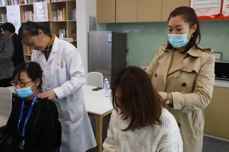 針對中建廣場廣大職工群眾容易出現的“疲勞”、“頸椎不適”等情況,公司工會特別邀請上海中醫藥大學曙光醫院杜玉青博士為大家進行頸椎病防治宣講。