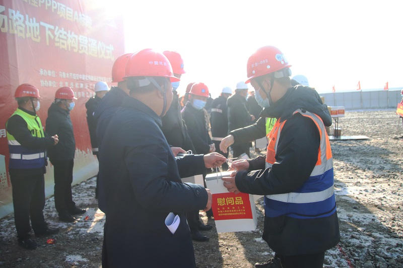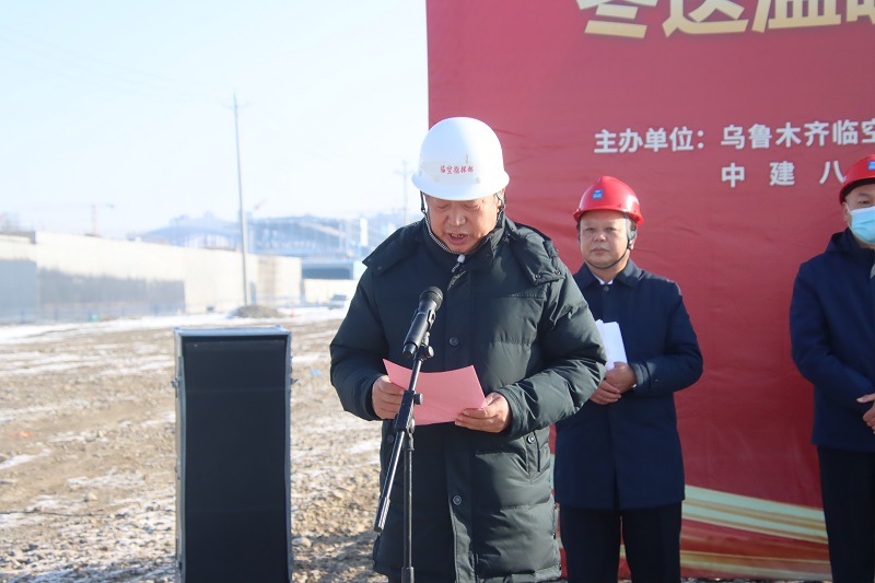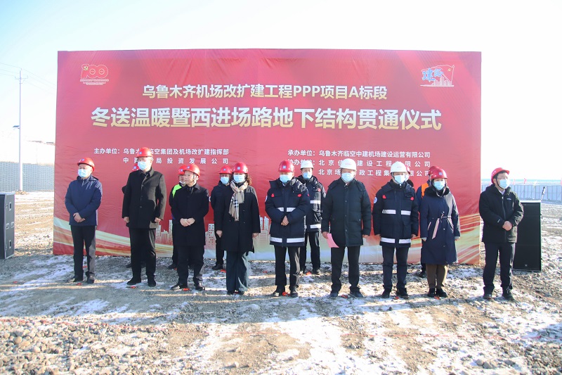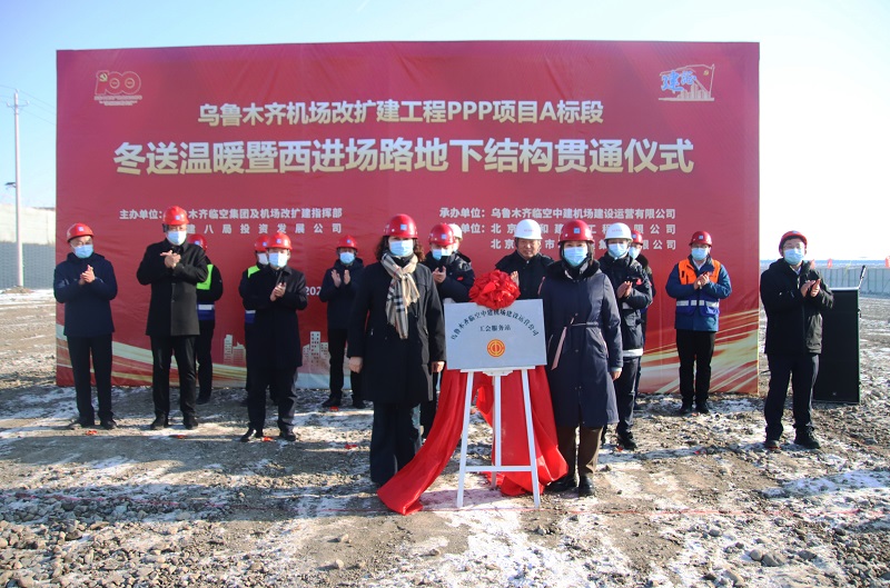 11月22日,中建八局投資建設的烏魯木齊機場改擴建工程PPP項目A標段舉行冬送溫暖暨西進場路地下結構貫通儀式。烏魯木齊市總工會黨組成員、副主席阿依夏木?米吉提,法律與權益保障部部長李蕾,市勞動保障監察支隊副支隊長劉勃強,市勞動保障監察支隊四大隊大隊長李仲,臨空集團黨委書記、董事長王紅政;機場改擴建指揮部指揮長助理司開林;臨空集團總經理助理、項目公司董事長尚曉剛;臨空集團工會主席孫明;機場改擴建指揮部黨群部部長唐巨;中建八局投資公司黨委副書記、紀委書記、工會主席胡曉華;項目公司副總經理、工會主席王為兵,副總經理楊明,助理總經理、飛行區工程總監楊勇等領導出席,航站區中建八局、中建三局、中建新疆建工3個機場項目部和飛行區8個參建單位管理人員及勞務工人代表共140人參加活動。