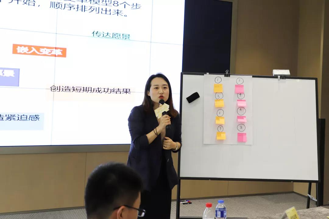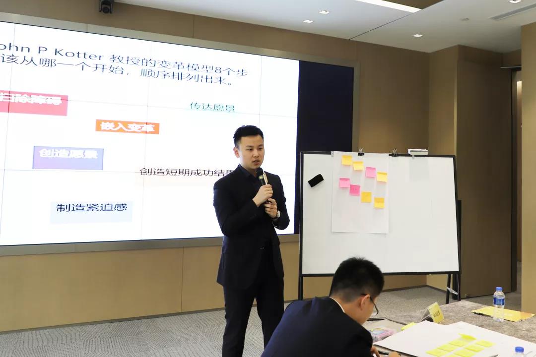 下午,特邀講師葉慧琍作《組織變革與領導力》專題授課,葉老師是上海交通大學安泰經管學院高管教育中心課程教授、香港城市大學商學院MBA項目商業導師,擁有亞洲和兩岸三地接近三十年高管及培訓經驗。葉老師通過一個真實的變革管理案例引入John P Kotter變革模型8步驟,晚上的課程葉老師通過戰略思維工具組織學員進行小組沙盤模擬演練,通過大圖景思維推導發現課題研究過程中的問題和薄弱環節,幫助小組及時發現短板。