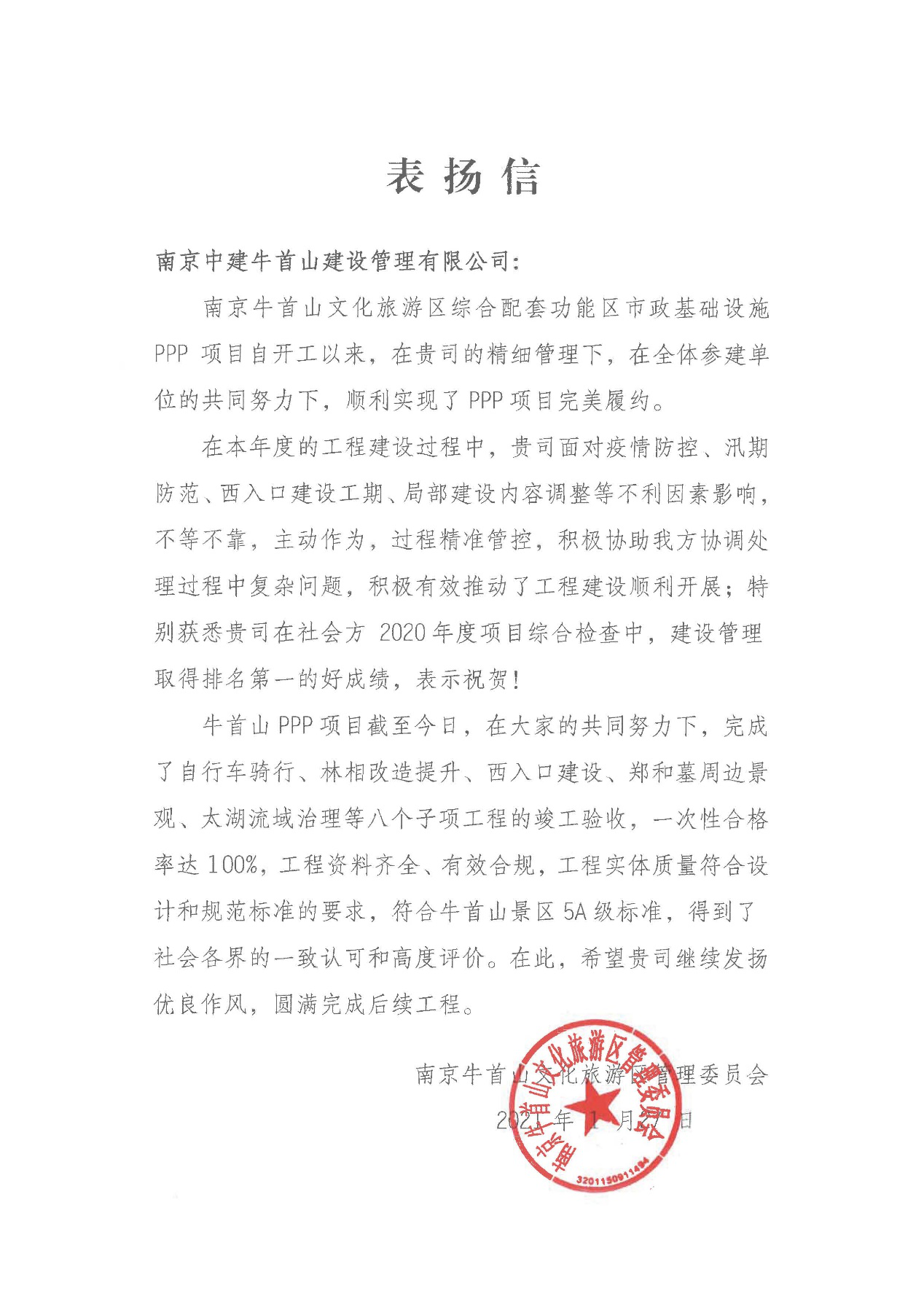 近日,南京牛首山PPP項(xiàng)目喜獲政府方發(fā)來(lái)的表?yè)P(yáng)信。