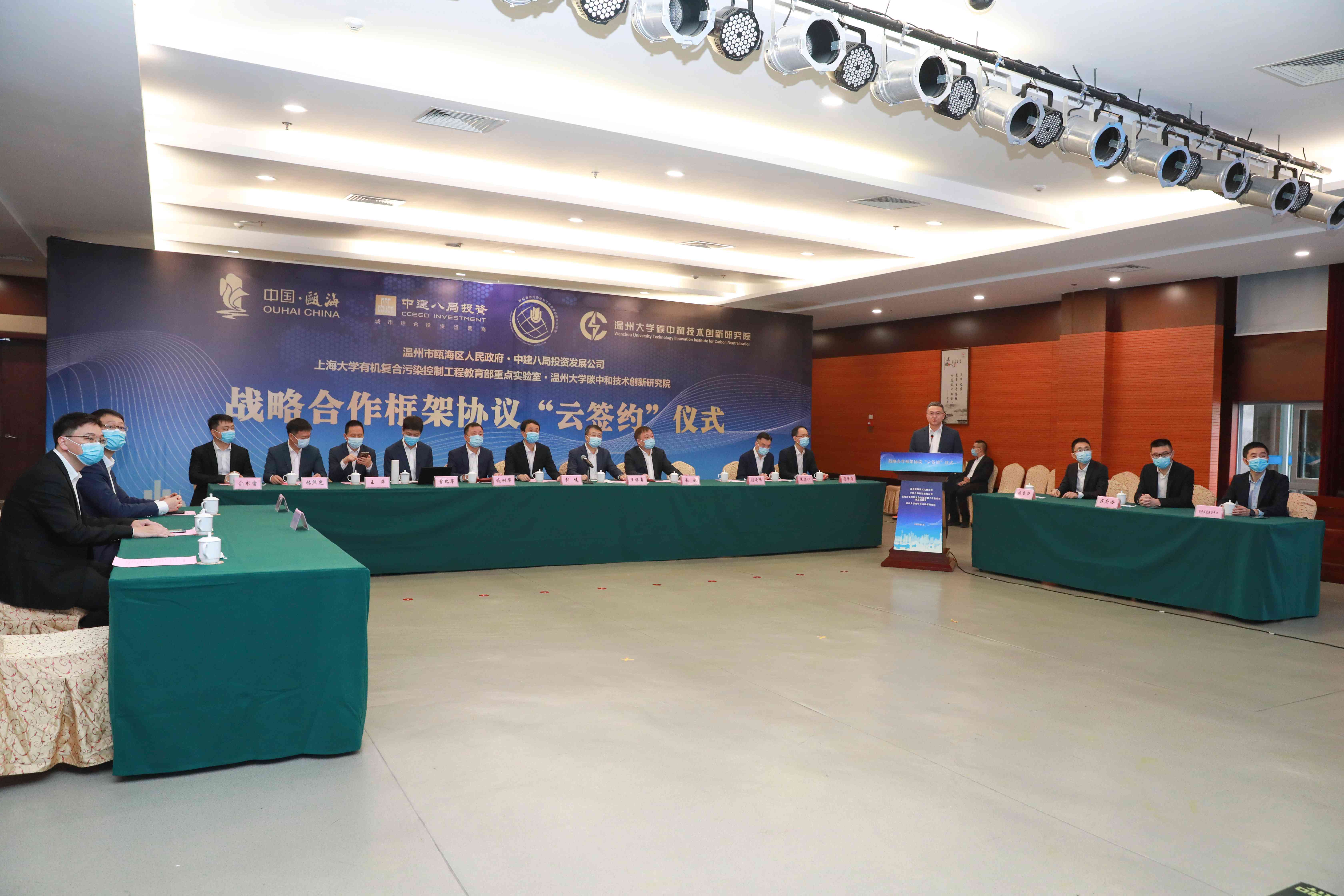 為響應國家構建清潔低碳、安全高效能源體系的政策,搶抓“雙碳”經濟發展機遇,近日,溫州市甌海區人民政府、中建八局投資發展公司、上海大學有機復合污染控制工程教育部重點實驗室、溫州大學碳中和技術創新研究院四方戰略合作簽約儀式在溫州及上海兩地線下線上舉行。