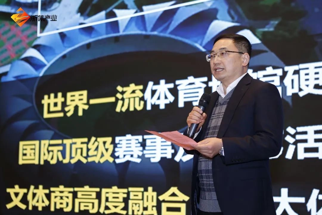 在本次浙江省體育產業聯合會三屆四次理事擴大會議暨運動振興鄉村高峰論壇大會上,杭州亞運三館項目公司黨支部書記、總經理、工會主席楊寶定作了特邀講話。楊寶定表達了對與會領導和活動組織方的感謝,從項目基本情況、硬件條件、賽后運營期業態布局等方面介紹了杭州亞運三館項目的現狀和規劃,分享了中建八局和投資公司的整體運營業務版圖和未來發展藍圖。
