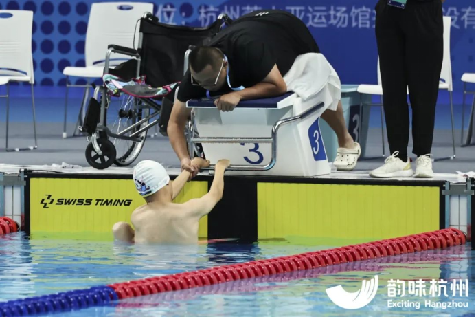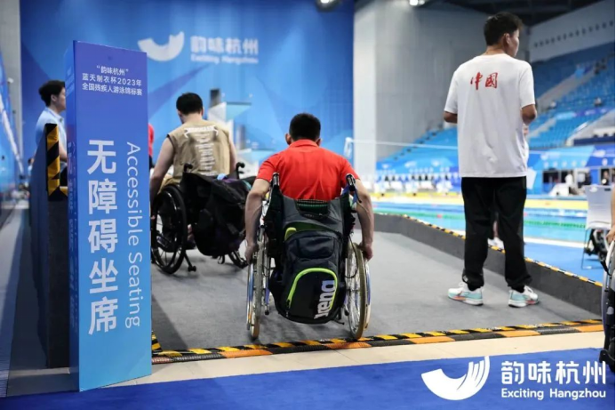 游泳是1960年首屆殘奧會的,8個運動項目之一,具有廣泛的適用性,視力殘疾、肢體殘疾或,智力殘疾的運動員都可參加,杭州奧體中心游泳館在設計建造時,充分考慮殘運會及殘疾人運動員的需要