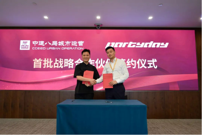 姜立健代表中建八局城市投資運營管理有限公司與首批戰略合作單位代表現場簽約。首批單位分別為體育產業、商業管理、體育競技、運動空間運營、物業管理以及商業經營領域的TOP級企業,以本次戰略簽約為契機的全新合作,將打通產商融合的產業鏈,加速打造八局城市運營品牌、打響行業知名度,賦能城市運營業務高質量發展。