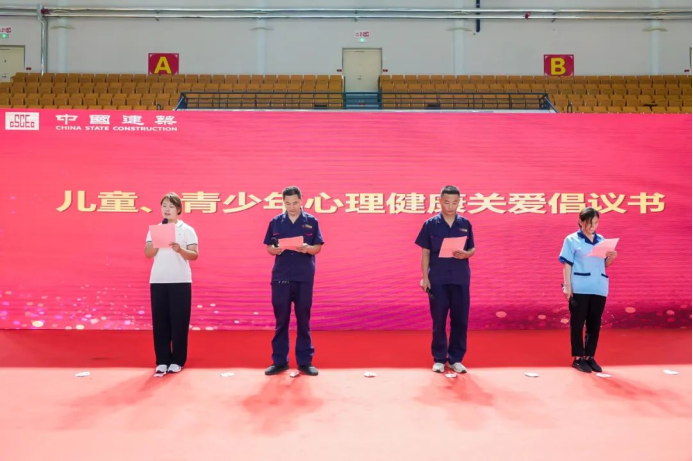 志愿者團隊宣讀兒童、青少年心理健康關愛倡議書,倡議將積極營造和諧家庭氛圍,樹立良好的言行榜樣,培養(yǎng)平等對話意識,做好孩子教育引導,培育孩子積極心理品質(zhì)。
