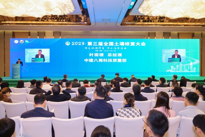 11月6日-8日,由中國科學院南京土壤研究所、中國土壤協會等主辦,中建八局環保科技有限公司(以下簡稱“環科公司”)承辦的第三屆全國土壤修復大會在南京召開。中國科學院南京土壤研究所所長沈仁芳,聯合國糧食及農業組織主任佟玉欣,中建八局科技質量部總經理葉現樓等出席開幕式并致辭,環科公司黨支部書記、董事長黃相鋒受邀參加會議。中國科學院院士陶澍、中國工程院院士吳豐昌等領域權威專家,以及來自國家有關部門、科技界、企業界的代表共1300余人現場參加會議。