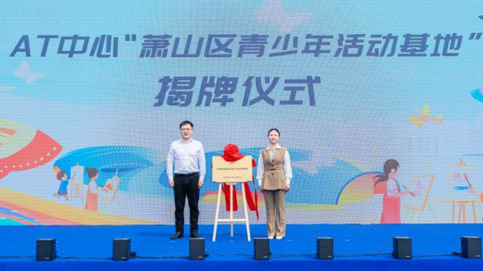 汪夢嬌與林榮輝為“蕭山區青少年活動基地”揭牌。