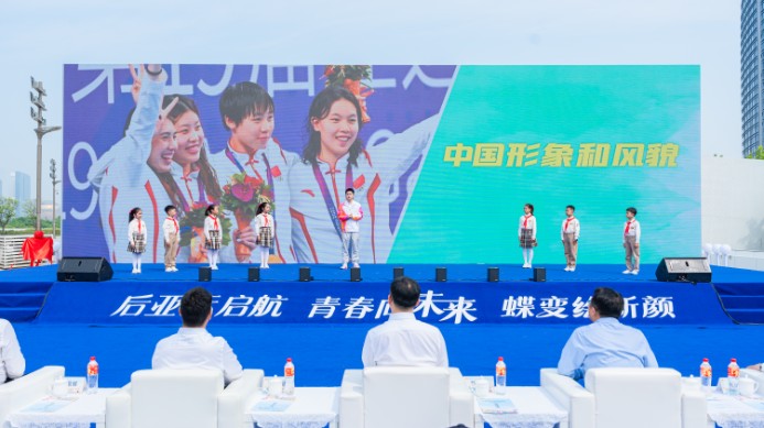 5月7日,由杭州市蕭山團區委、蕭山區教育局、蕭山區少工委、投資公司團委主辦,蕭山區青少年宮、亞運三館項目承辦,蕭山區“后亞運啟航,青春向未來,蝶變繪新顏”主題活動在杭州奧體中心體育游泳館舉行。錢江世紀城黨工委副書記、管委會主任韓趙炎,團區委副書記徐凱達,團區委常委、區青少年宮負責人汪夢嬌,區教育局綜合素質教育科科長、區少先隊總輔導員章國明,區教育團工委書記郎露寅,區美術家協會秘書長張菊芳,投資公司黨群工作部部長、團委書記林榮輝,杭州亞運三館項目黨支部書記、總經理楊寶定,執行總經理李粵出席活動。