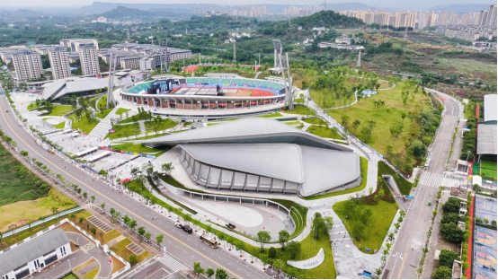 重慶合川體育中心項(xiàng)目作為此次活動(dòng)的舉辦地 總占地354畝 集2萬座的乙級(jí)中型體育場 能容納8100人的乙級(jí)大型體育館 1500座游泳館、全民健身中心 及2萬平方米商業(yè)中心于一體