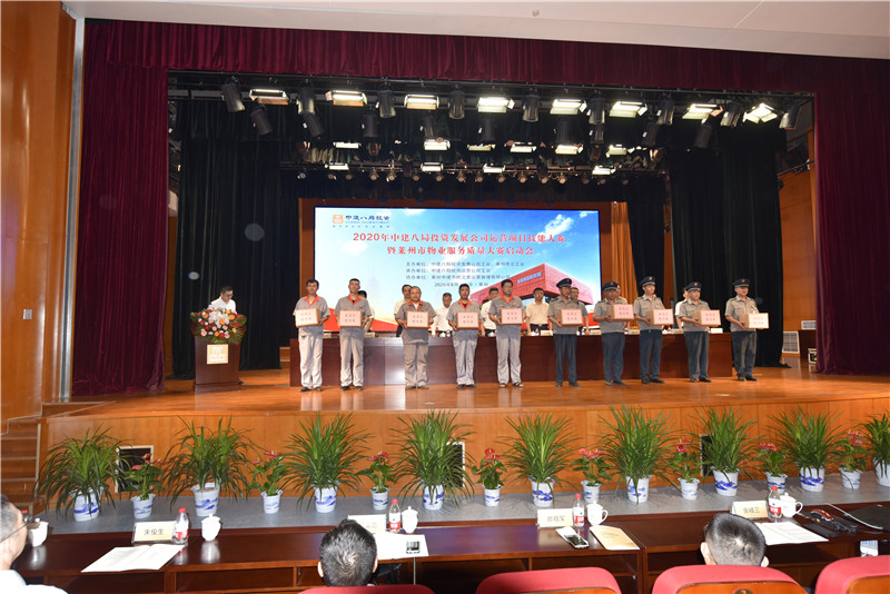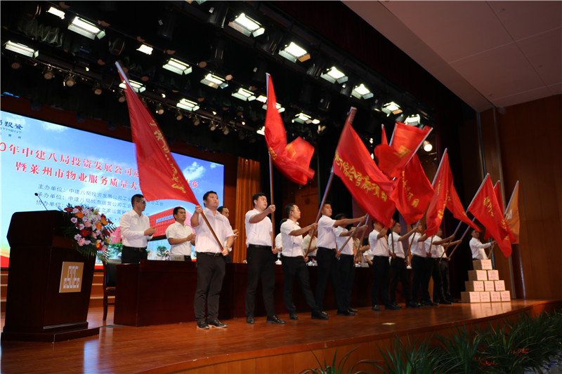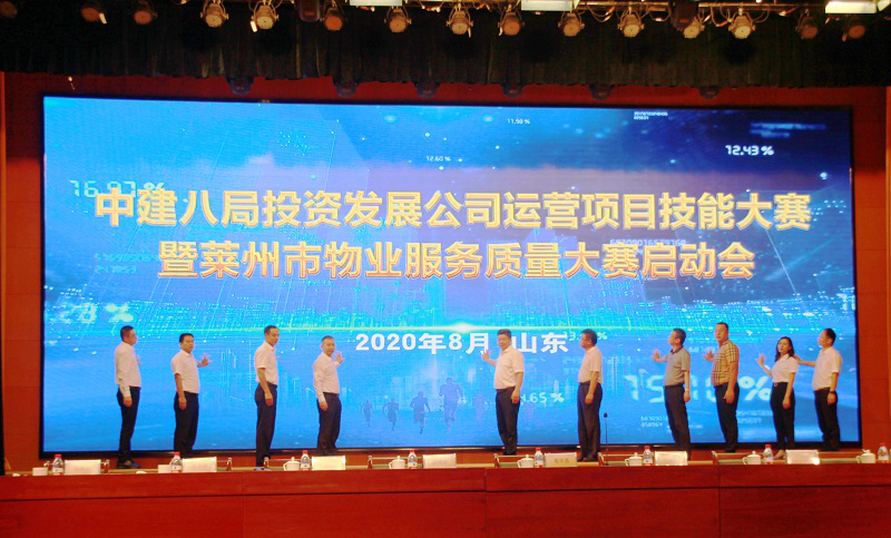 8月14日上午9點,在中建八局萊州市民之家項目萊州會堂舉辦2020年中建八局投資發展公司運營項目技能大賽啟動會。萊州市市委常委、副市長葛學通,萊州市總工會黨組書記、常務副主席尹文濤,萊州市民之家服務中心主任張金濤,萊州市行政審批服務局局長、市政務服務管理辦公室主任呂俊峰,萊州市住房和城鄉建設管理局副局長楊軒瑞,萊州市總工會黨組成員、副主席張岐三;中建八局投資發展公司黨委副書記、紀委書記、工會主席胡曉華,中建八局投資發展公司副總經理兼資產運營公司總經理陳勇,中建八局投資發展公司黨群工作部經理王淅,中建八局投資發展公司資產運營公司黨總支書記李岳存,中建八局投資發展公司資產運營公司副總經理田汝營,萊州市三項目負責人付正峰,日照西綜合客運站項目負責人梁棟、濟南海綿城市項目負責人劉浩東、青州S102項目公司負責人朱俊生,項目物業管理人員代表、一線員工代表等共計100余人參加啟動會。沈陽管廊項目、銀川客運站項目、余杭世紀大道項目、肇慶長利湖項目、楊凌網球中心項目負責人、部門經理、運營管理人員、委托單位主要管理人員等共計50余人視頻參會。