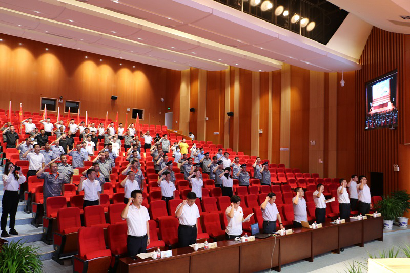 隨后,萊州政務服務中心項目吳鵬東經理帶領入會物業員工集體宣誓,口號響亮,表達必勝的決心,展現鐵軍精神,彰顯央企風貌。