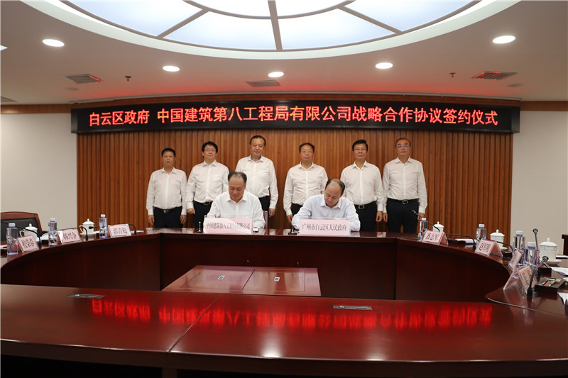 9月15日上午,中建八局與廣州市白云區人民政府簽訂戰略合作協議。廣州市白云區區委書記趙軍明,區委副書記、區長蘇小澎,區委常委、常務副區長吳揚,中建八局黨委書記、董事長校榮春,副總經理韓興爭,副總經理儲小彬,華南公司黨委書記、董事長郭青松,投資公司華南分公司黨委書記許云龍等出席簽約儀式,儀式由白云區區委常委、副區長潘志軍主持。