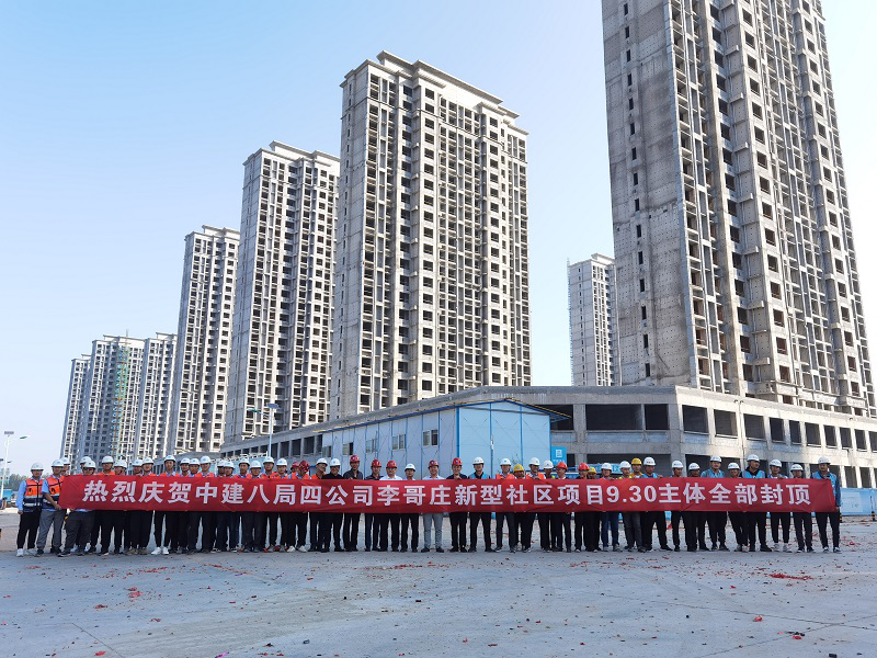 9月30日上午8時48分,膠州李哥莊新型社區項目安置區A地塊主體結構全部封頂。李哥莊鎮村鎮建設局劉棕一,中建空港置業項目經理王曉航,項目公司副總經理陳程,四公司項目全體人員、監理單位參加封頂儀式。