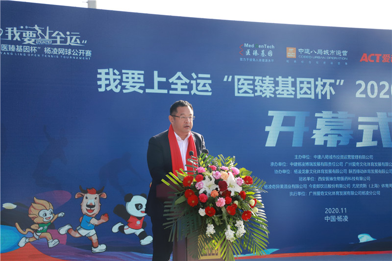 開幕儀式上,中建八局投資公司副總經理、運營公司總經理陳勇在致辭中表示,楊凌網球運動中心見證了中建八局與楊凌示范區的友誼,也見證了八局為楊凌發展作出的央企貢獻。希望通過本次賽事,彼此合作更深入、關系更緊密、友誼更深厚,共同為楊凌示范區建設貢獻力量!
