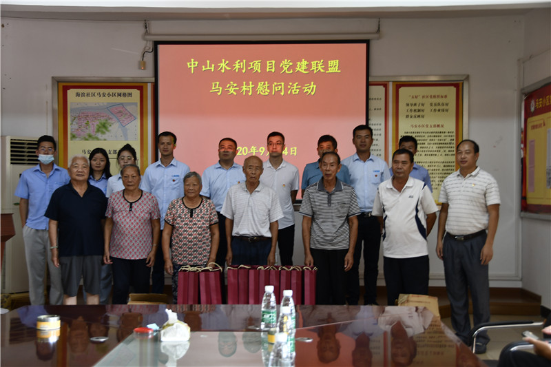 國慶節、中秋節即將來臨之際,為了弘揚敬老、愛老的傳統美德,為了讓退休老干部、老黨員過一個快樂、祥和的節日,9月24日下午,中山水利項目黨建聯盟到項目所在地馬鞍村慰問馬鞍村退休老干部、老黨員。