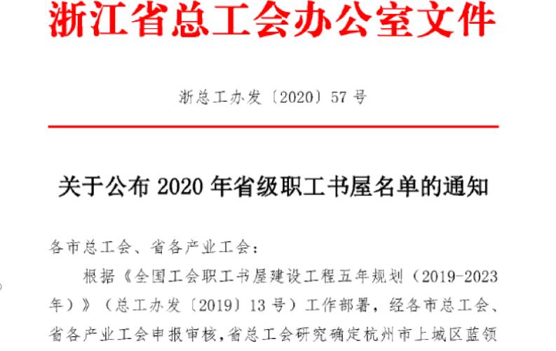 浙江分公司亞運三館項目職工書屋榮獲 “浙江省職工書屋”榮譽稱號